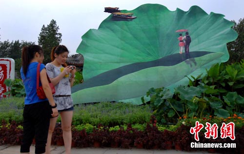8月中旬,北京圆明园遗址公园荷花节上的巨型“荷花”模型,引人注目。