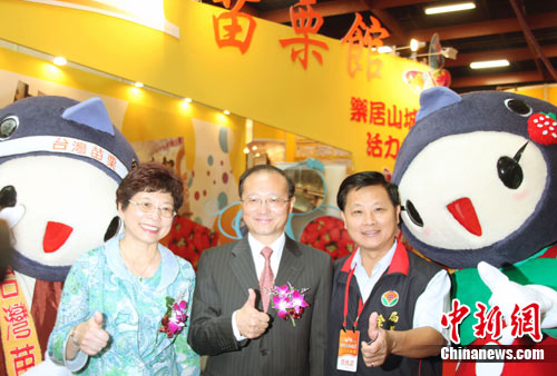 8月13日,海峡两岸台北旅展在台北开幕。海峡两岸旅游交流协会会长邵琪伟率大陆31个省(区、市)、新疆生产建设兵团参展,促进两岸旅游业者实质交流。图为邵琪伟与台湾海峡两岸观光旅游协会会长赖瑟珍在台湾苗栗县的展场参观。