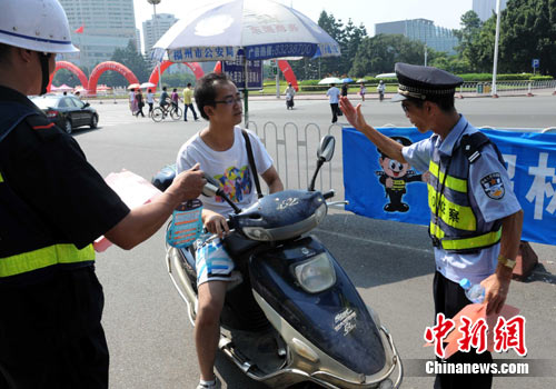 8月15日,福州市“四横四纵”涉及14条道路禁止超标准、未注册电动自行车及摩托车通行。“限电限摩”首日,福州警方在“限电限摩”区域设置130多个劝导点,进行执法。据了解,从8月15日起至31日为教育劝导阶段,不对闯入禁行区域的车辆进行处罚。