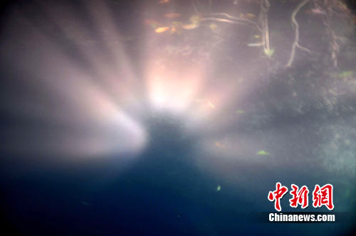8月15日,四川乐山市民吴达强用相机拍下神奇的身影佛光。令人称奇的是,峨眉山龙洞外的佛光出现频率极高,且有大量的光柱,似乎伸手就能摸到。佛光持续20分钟左右,比金顶佛光的持续时间长,龙洞佛光与人的距离不足10米,金顶佛光与人的距离很远。此外,龙洞佛光有明显的光柱现象,看起来比金顶佛光更加神奇。图为佛光周围的光束。