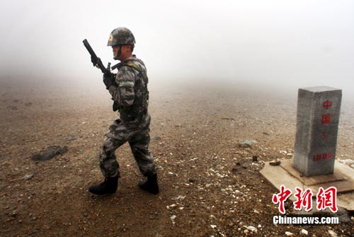 初秋时节,武警边防部队冒着狂风浓雾暴雨在海拔2200多米的吉林省长白山天池中朝边境巡逻。长白山主峰的天池,水面海拔2194米,是中国分布位置最高和最大的火山口湖,面积近10万平方公里,是松花江、图们江、鸭绿江的发源地。