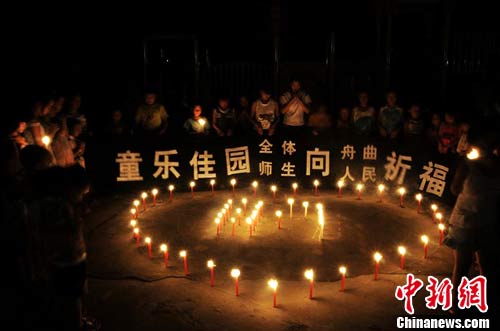 舟曲遭难,举国哀伤。8月15日晚8时,位于伊川县白元乡土门村的“童乐佳园”幼儿园内,20多名师生点亮了蜡烛,默哀三分钟,为在舟曲特大山洪泥石流中不幸遇难的同胞祈福。