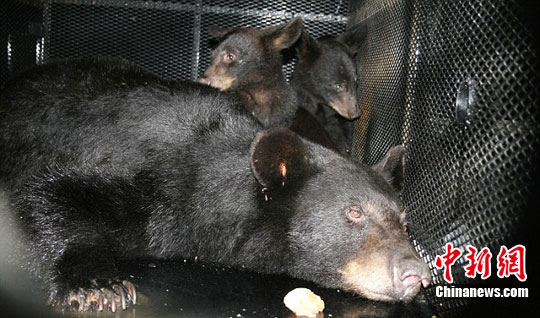 图:黑熊头部被塑料罐套住10天未进食(2)