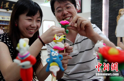 8月16日,一对年轻情侣在上海老字号商城内自制“玫瑰花”浪漫迎“七夕”。当日是中国传统节日七夕节。七夕又称“乞巧节”、“女儿节”,在这一天,年轻女子会精心打扮,穿针乞巧、礼拜七姐,祈求心灵手巧和美满的姻缘。七夕是民间传说中牛郎与织女相会的日子,因此又被当代人追捧为“中国情人节”。