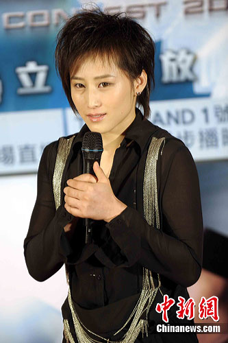 8月17日,全国女子武术冠军蒋璐霞在香港出席《2010香港先生选举》宣传活动,该电视片是无线首次引入3D科技制作。中新社发 谭达明 摄