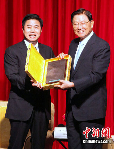 8月17日,广东省省长黄华华在台北与海基会董事长江丙坤会面,双方关注在两岸经贸合作框架协议(ECFA)签署后进一步促进粤台经贸合作。中新社发 刘舒凌 摄