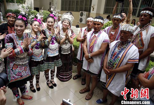 两岸少数民族姑娘小伙儿即兴“对歌”(2)