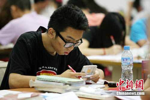 8月18日,北京一中学生在首都图书馆自习室赶工暑假作业,忙得焦头烂额。快乐的暑假行将结束,孩子们终须面对未完成的作业,不得不重新捡起课本,到自习室里“蛰伏”。