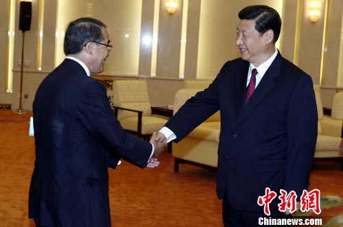 8月19日,中国国家副主席习近平在北京人民大会堂会见日本长崎县知事中村法道一行。中新社记者 任海霞 摄