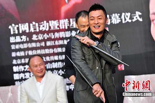 图为余文乐秀兵器引发笑场。中新社记者 李学仕 摄