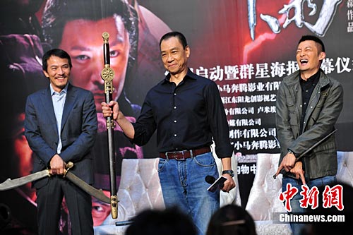 图为“杀手三人组”王学圻、余文乐、戴立忍“论剑”。中新社记者 李学仕 摄