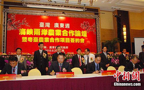 8月20日下午“台湾·广东周”海峡两岸农业论坛暨粤台农业合作项目签约在台湾台南县举行,签约农业合作项目20个,金额达8,581多万美元。中新社记者 梁永强 摄
