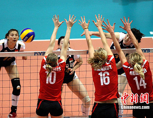 8月21日,“2010世界女排大奖赛香港站”赛事进入第二天,中国女排再下一城,以3 :0的局数击败对手德国队。中新社发 洪少葵 摄