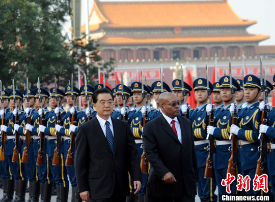 图:胡锦涛举行仪式欢迎南非总统祖马访华
