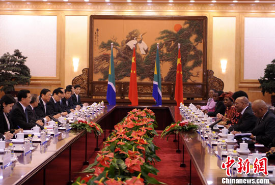 8月24日,中国国家主席胡锦涛在北京人民大会堂同南非总统祖马举行会谈。中新社发 廖攀 摄