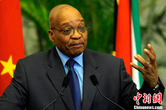 8月25日下午,南非共和国总统祖马在北京钓鱼台国宾馆召开新闻发布会,介绍访华成果。中新社发 刘震 摄