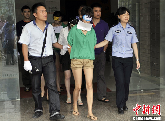 8月25日,长沙市公安局透露:在公安部的统一指挥协调下,湖南、福建、湖北、安徽等省公安机关与台湾警方同步展开收网行动,成功摧毁一个由台湾籍犯罪嫌疑人组织操控的跨两岸特大电信诈骗犯罪网络群。图为长沙公安民警成功捣毁一诈骗窝点后,将犯罪嫌疑人带离。中新社发 长警 摄