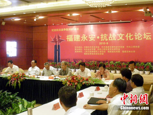 为纪念抗战胜利65周年,26日,由中国中共党史学会、福建省委党史研究室、中共三明市委共同主办的“福建•永安抗战文化论坛”,在永安隆重举行。本次论坛为期2天,主要围绕“抗战文化”这一主题展开讨论、交流,深入研究永安抗战文化在中国抗战历史中、在中国新文化运动史上的历史地位和文化价值以及发掘永安抗战文化为经济社会发展服务的历史资源。