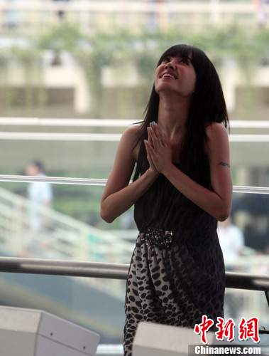 8月27日,艺人蔡依林在上海参观世博台湾馆,亲手“点天灯”祈福平安。中新社发 汤彦俊 摄