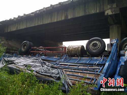 中新网淮安8月27日电(衡中强 夏琪铭 朱晓颖)27日清晨6时10分许,一辆大货车行驶至江苏淮安市洪泽县宁连公路苏北灌溉总渠大桥时,突然撞断大桥护栏从10多米高的桥上倒翻下去,致使车内2人重伤。