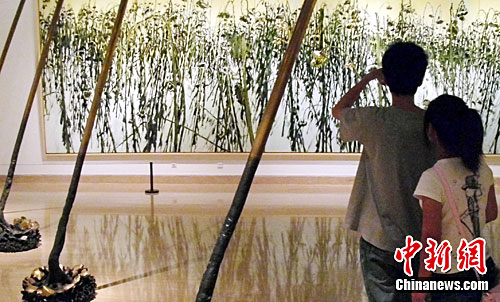 8月27日,正在北京中国美术馆展出的“建构之维――2010中国当代艺术邀请展”吸引好奇参观者。中新社记者 钱兴强 摄