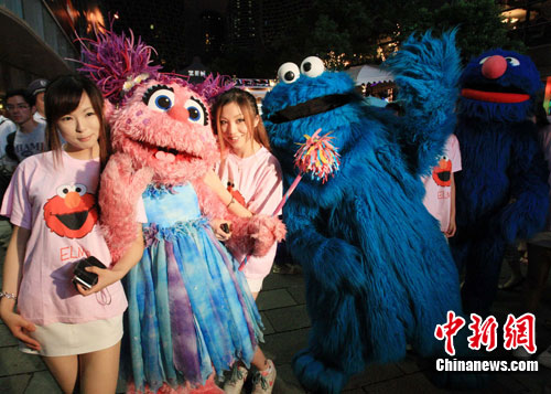 8月27日晚,“上海新天地迷你世博美国文化周”开幕,美国家喻户晓的“芝麻街”人偶在上海时尚地标新天地巡游以展示美国文化。中新社记者 潘索菲 摄