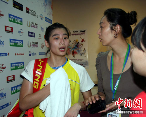 2010年世界羽毛球锦标赛当地时间8月27日下午在巴黎进行了女单1/4决赛,七号种子、中国的王琳(左1)以2:0战胜日本选手广濑荣理子,晋级女单半决赛。王琳也为昨天输球的队友王仪涵成功复仇。中新社发 吴卫中 摄