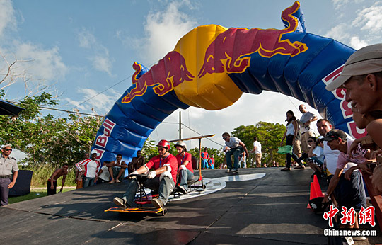 当地时间8月27日,古巴首都哈瓦那举行了首届无动力自制小车大赛。82名参赛选手驾驶着41辆自制小车参赛。