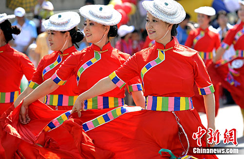 图为闭幕式上精彩的民族文化表演。中新社记者 刘震 摄