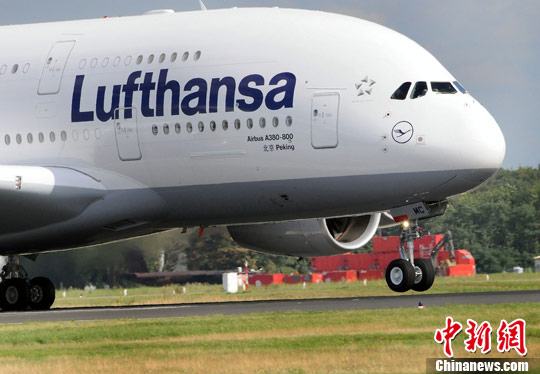 近日,德国汉莎航空公司接收第三架A380客机,将其命名为“北京号”并执飞中欧航班,这是汉莎航空首次以非德国首都城市名称命名其机队飞机。中新社发 刘利 摄