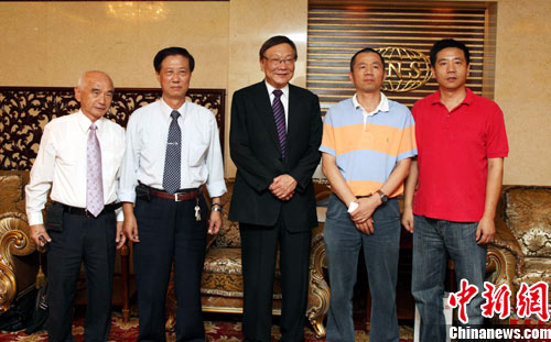 2010年8月30日,中国新闻社副总编辑夏春平在北京会见了来访的英文台湾日报社长翁嘉宏一行,商讨双方图片合作事宜。图为双方代表合影,从左到右依次为:英文台湾日报资深编辑刘木溪、英文台湾日报主编廖继铭、英文台湾日报社长翁嘉宏、中国新闻社副总编辑夏春平、中国新闻社图片网络中心主任李新洲。中新社发 陆欣 摄