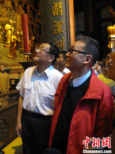 图为李敖参观杭州灵隐寺。何鸣 摄