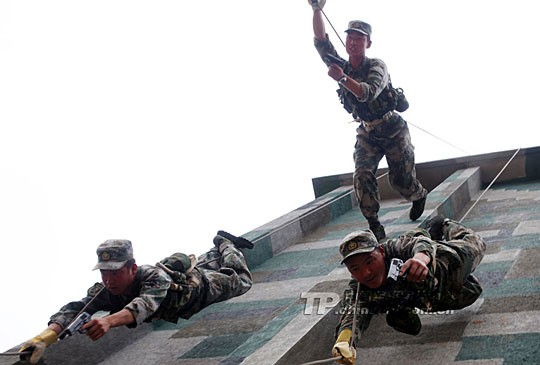 沈阳军区某摩步师侦察兵训练。郭勇 摄