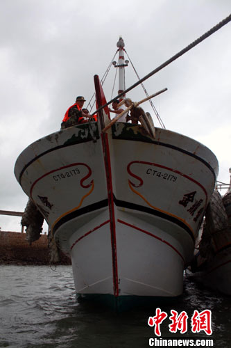 8月31日,福建边防派出所官兵深入码头、渔排、台轮停泊点,帮助辖区渔船民和来靠台胞加固船只及渔排,以应对当前海面上“狮子山”、“圆规”和“南川”三个热带风暴的夹击。中新社发 黄煜情 摄