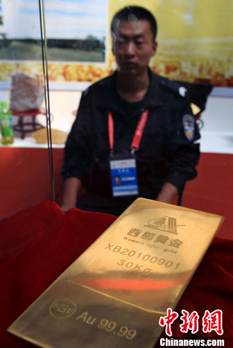 9月1日,第十九届中国乌鲁木齐对外经济贸易洽谈会在新疆国际博览中心盛大开幕,展会现场一块重达30公斤的金砖吸引了众多中外客商的眼球。