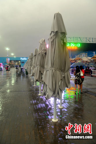 9月1日,受“圆规”外围影响,上海市吴淞口、小洋山等沿江沿海地区出现了7级阵风,其中以吴淞15.3米/秒为最大。世博园区阵风有6级。为做好台风“圆规”应对工作,世博园区已启动防台防汛相关预案:园区内抢修队和园外待命人员到岗值班,全面检查防台防汛抢险物资到位情况。排水泵站腾出库容,确保园区排水顺畅;同时将地面及高架步道上的遮阳伞收起,对遮阳棚、固定遮阳伞进行加固。