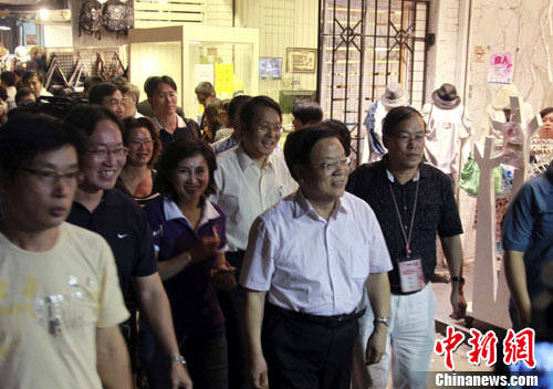 9月3日晚间,蔡武一行在台中市体验逢甲夜市。应台湾财团法人沈春池文教基金会邀请,中华文化联谊会名誉会长蔡武率中华文化联谊会交流访问团抵台访问。