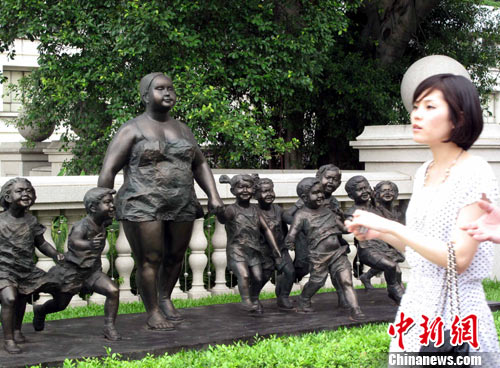 9月4月,香港观众在欣赏拍摄艺术品。10月初举行“香港国际古玩及艺术品博览会”的一批艺术品,9月2至9日在尖沙咀地标“1881”预展,率先展出六件大型户外雕塑,创作年份横跨古代至当代,包括唐代石雕佛香港预展国际古玩及艺术品博览会的艺术品像、以至当代雕塑艺术家许鸿飞的《肥女人》系列作品《大地晨光》等。