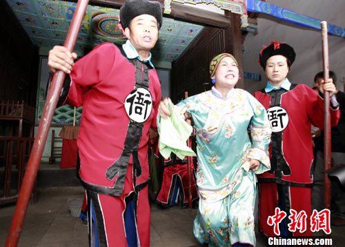 9月4日,河南南阳,内乡古县衙升堂审理一桩杀人凶案,使人们了解古代审案之法,令人叹为观止。中新社记者 王中举 摄