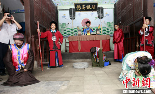 9月4日,河南南阳,内乡古县衙升堂审理一桩杀人凶案,使人们了解古代审案之法,令人叹为观止。中新社记者 王中举 摄