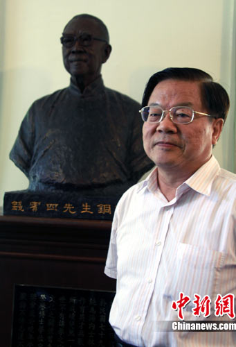 9月5日下午,正率团在台访问的中华文化联谊会名誉会长蔡武在台北参观钱穆故居。图为蔡武在钱穆先生铜像前留影。