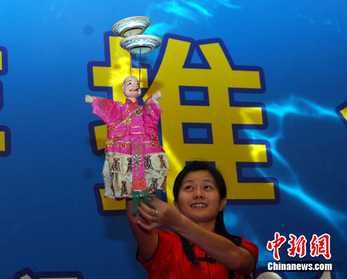9月7日,来自福建平和县布袋木偶不禁让人称奇,不用过多的语言介绍,平和木偶厦门旅博会上展杂技,木偶咬铁枝,铁枝上还要转上二个盘子,现场嘉宾纷纷叫好,平和六就让人们记住了。今年在厦门旅博会上九地旅游推介推陈出新,亮点颇多。张丽君 摄
