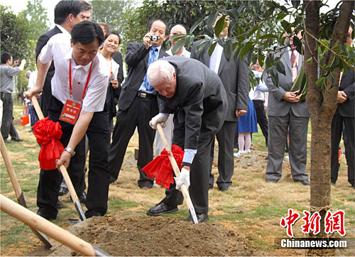 美国前总统卡特与飞虎队老兵抗战受降地芷江共植友谊树
