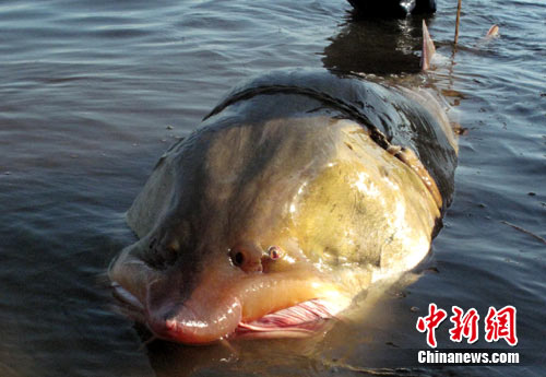伊春渔民捕获水中“活化石”巨型鳇鱼(2)
