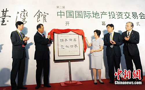 9月8日,第二届中国国际地产投资交易会首设的台湾馆开馆仪式在厦门国际会展中心举行,中共福建省委常委、副省长陈桦(右三)和中国国民党中常委、海基会董事、台湾土地开发股份有限公司董事长邱复生(左二)共同为台湾馆揭幕。中国国民党荣誉主席连战为该馆题词“携手两岸,走向世界”,而台湾地产商首次组团登陆招商,在两岸土地合作上具有开创意义。
