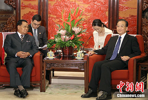 9月9日下午,中国国务院总理温家宝在北京中南海紫光阁会见缅甸联邦国家和平与发展委员会主席丹瑞。中新社记者 任晨鸣 摄