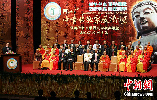 9月9日上午,以“百年辛亥 百年佛教 丕振宗风 继往开来”为主题的首届“中华佛教宗风论坛”在香港理工大学综艺馆开幕,香港政务司司长唐英年、中联办副主任李桂康、国家宗教局副局长齐晓、中国佛教协会会长传印长老等嘉賓出席开幕式。为期两天的论坛將举办多场国家级专家学者及法师担任主讲嘉宾的专题演讲,来自两岸三地的300多位高僧大德和专家学者出席这次高层次的佛教界聚会。