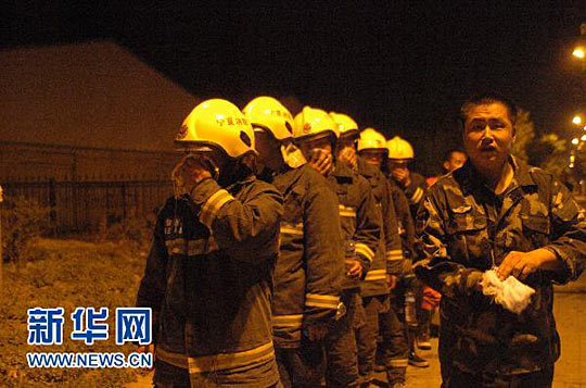 9月9日,消防官兵在事故现场附近待命。覃海石 摄