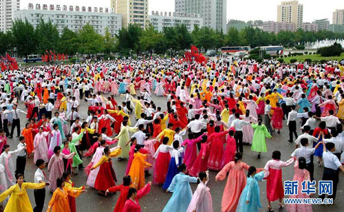 9月9日,朝鲜青年学生在首都平壤举行集体舞会欢度国庆。当天是朝鲜民主主义人民共和国成立62周年纪念日。