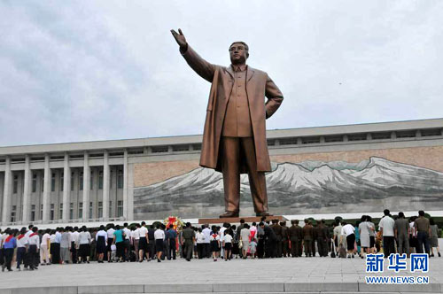 9月9日,朝鲜首都平壤各界群众前往市中心的朝鲜前党和国家领导人金日成铜像前献花。当日是朝鲜民主主义人民共和国建国62周年纪念日。高浩荣摄
